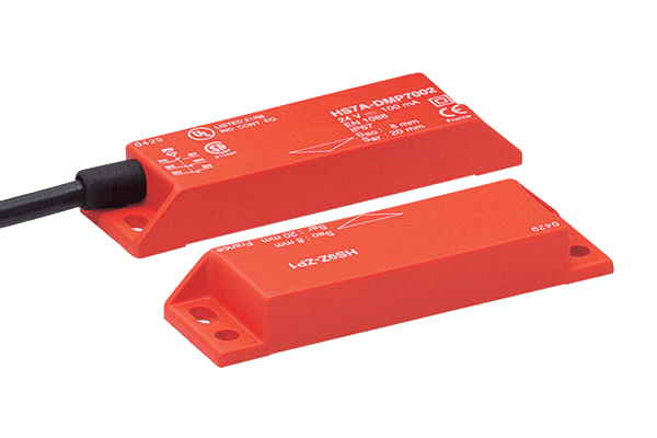 HS7A-DMP Non-contact magnetic safety interlock switches perform the same functions as standard mechanical safety interlock switches, but are designed to be used in applications where non contact is desired between the switch and its actuating key. It's also being used where space is at a premium. The slim profile makes it easy to mount in locations out of the way of personnel and machine operation, reducing the possibility of damage or misalignment.