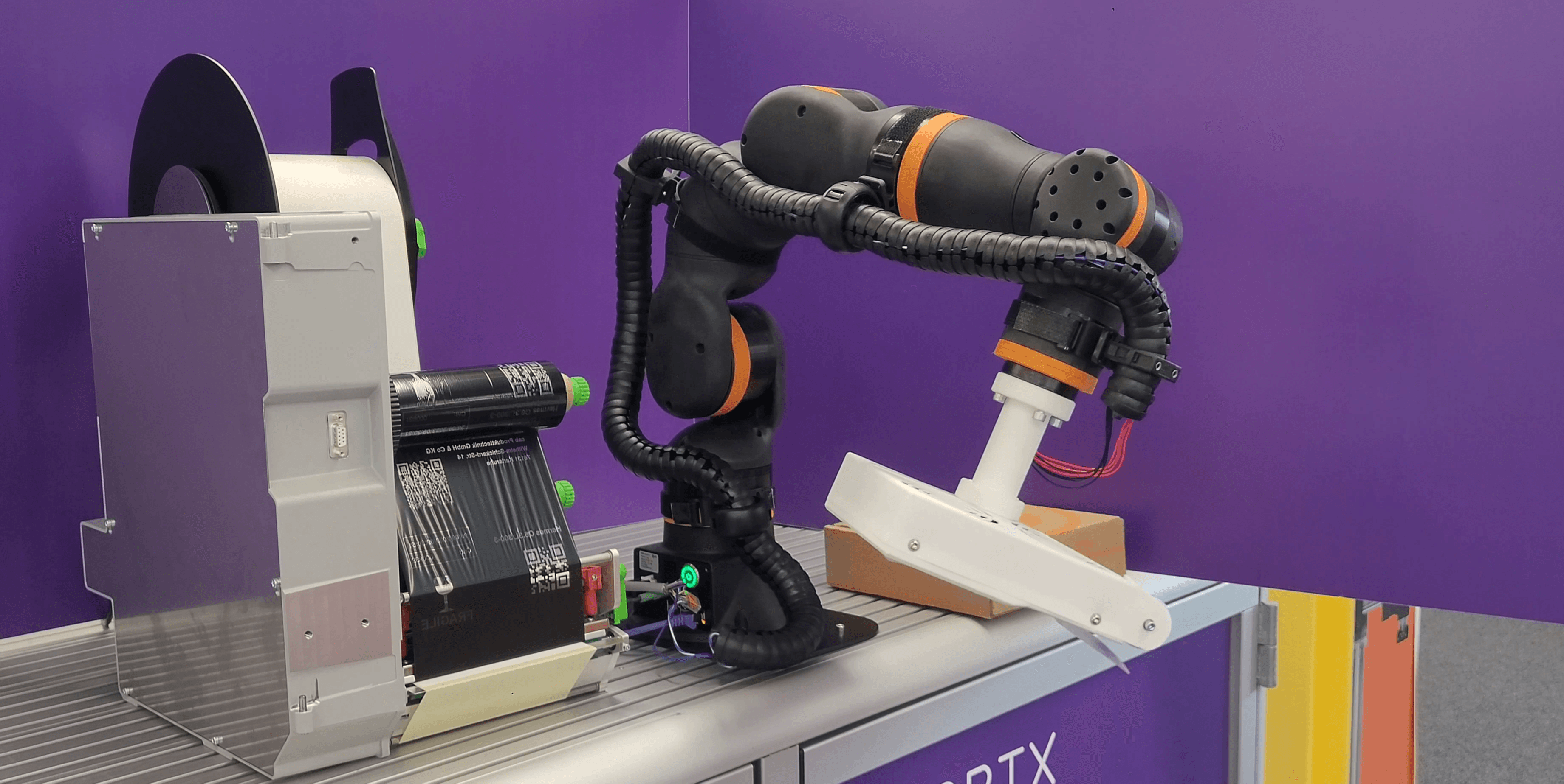 Discover the fascinating combination of the Cab Label Printer and the Igus Rebel 6DOF Robot. Learn how this innovative solution revolutionizes package labeling, saving you time, money, and effort. See how the robotic arm precisely captures packages and prints labels with the Cab Label Printer. This mobile and intelligent solution allows for fast, efficient, and accurate labeling of packages of all sizes and shapes. Optimize your logistics processes and focus on other important tasks. Contact us for more information or customized inquiries.